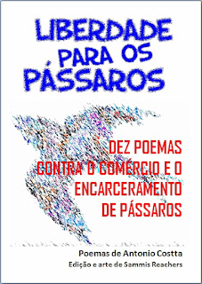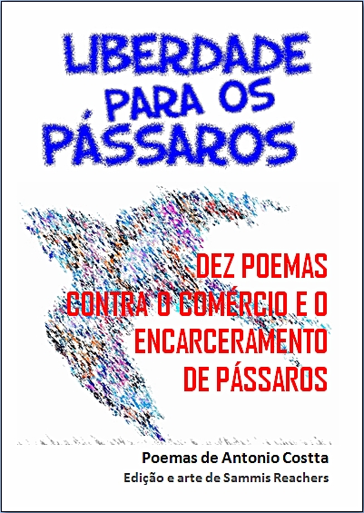 LIBERDADE PARA OS PÁSSAROS - 10 Poemas contra o comércio e o encarceramento de nossos pássaros - Reunindo 10 poemas de Antonio Costta, com edição e arte de Sammis Reachers, este breve opúsculo é uma pequena iniciativa para, através da poesia, estimular a reflexão, denunciando e combatendo o encarceramento de aves e também seu comércio ilegal.